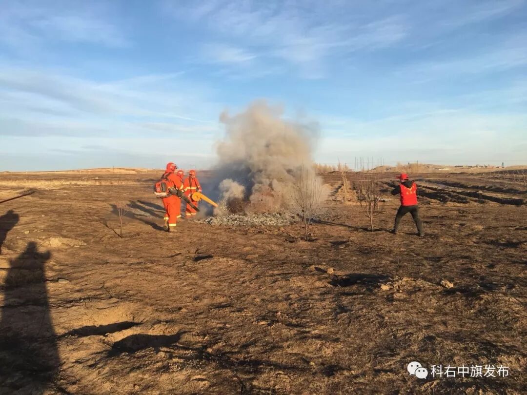 此次草原大火是从西北方向进入孟恩套力盖矿区工作部境内,孟恩套力盖矿区工作部及公益林防护人员发现火情后,科右中旗林业和草原局、森林公安、消防大队、百吉纳工业循环经济园区等部门与孟恩套力盖矿区工作部和当地农牧民迅速组成扑火队伍赶到现场进行全力扑火,经过3个多小时扑救,将逼近孟恩套力盖矿区工作部矿居民区的草原大火顺利扑灭,火情得到有效控制。据不完全统计,当天过火面积达3000余亩,累计出动人员150余人 ,车辆50余辆。