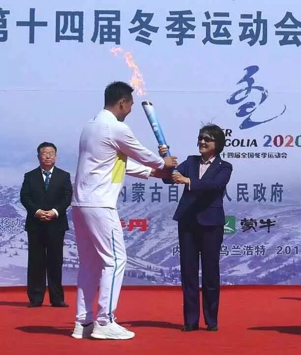 在五一广场,高志丹点燃圣火盆,布小林在圣火盆中点燃火炬,高高举起,向全场致意,现场一片沸腾,掌声、欢呼声此起彼伏。她将火炬授予第一棒火炬手、奥运冠军张小平,开启了“十四冬”火炬传递活动,标志着内蒙古正式进入“十四冬”时间。火炬将从兴安盟出发,由西向东在全区12个盟市传递,吹响冬运号角、掀起冬运热潮。
